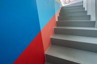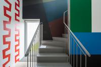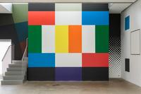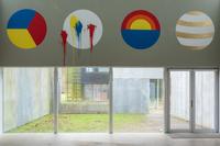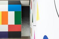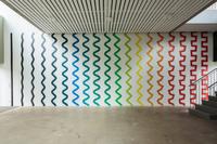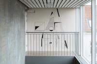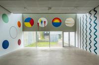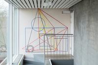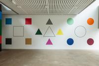 Based on the fact that Kandinsky was also the head of the mural painting department at Bauhaus, the students at Krabbesholm High School have been asked to answer the assignment by painting directly on the walls of the exhibition space Four Boxes. By combining the proces of answering the assignment and the presentation in the exhibition room, the workshop introduces not only the basic elements of the visual language, but also the challenge represented by large-scale production. Thus, in a collective engagement, the students create a joint work that merges with the gallery’s architecture and invites the exhibition’s audience to spatially experience the basic elements of design.