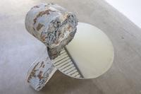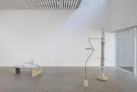 In their new work Pettersen & Hein moves away from the formal language of Minimalism. Instead, simple and abstract elements are combined in more complex, almost figurative, entities. The individual elements are fabricated in hard materials, especially concrete and steel, which are shaped into soft, organic shapes. In the process, where the steel is polished and the concrete dyed with coloured pigments, the materials are transformed further and endowed with a strong sensuous quality.