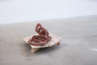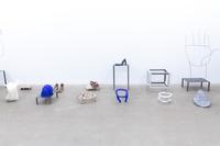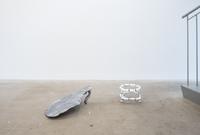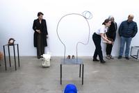 „Mate“ is a duo exhibition displaying sculptures of Biba Fibiger (DK) and Anica Kehr (DK) based on a live chess-match on the opening night determining the exhibitions final outcome. Both artists were invited to produce 16 sculptural works for the exhibition at Four Boxes, that were functioning as stand-ins for chess-figures. Two players had the power over what the exhibition would look like, without actually making any aesthetic decisions. While they battled each other on the chessboard, the objects were moved around the exhibition-space according to the players’ moves and only the sculptures “surviving” the game, would win a place in the exhibition. Instead of collaborating, the works fought each other, simultaneously writing and performing a choreography, engaging in temporary constellations and ultimately removing the other from sight.